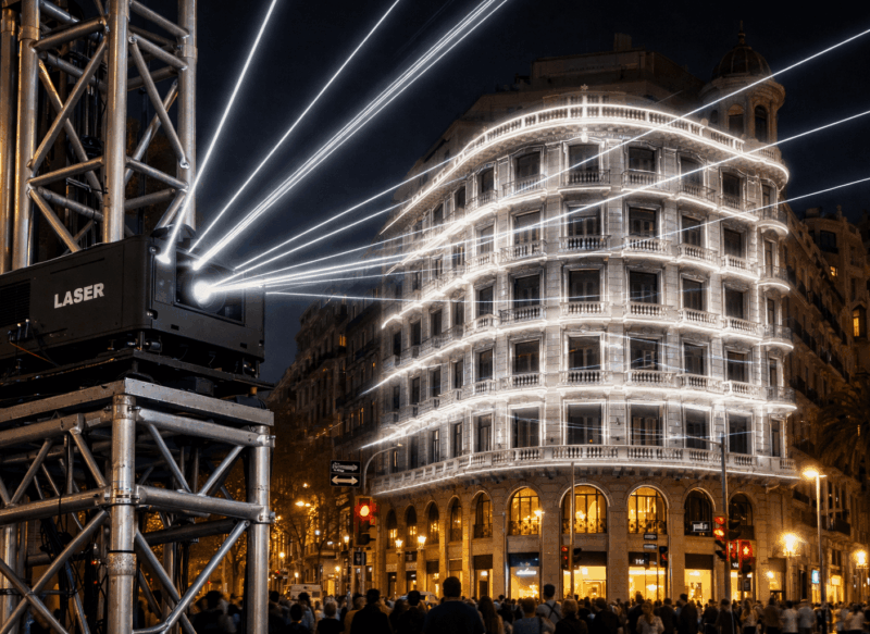 En AlquilarSonido Barcelona & Ibiza llevamos el espectáculo visual a otro nivel con nuestro servicio de Laser Mapping, una solución de alto impacto que combina tecnología láser profesional con sincronización audiovisual precisa.
